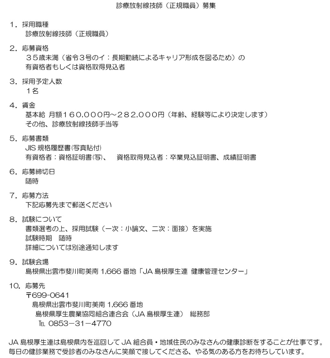 (ハローワーク求人番号 : 32030-09135551)